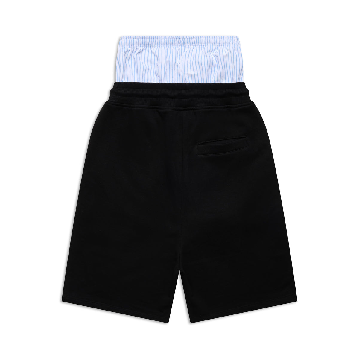 Finishing: Shorts with sewn on printed striped boxer shorts, logo embroidery under pocket, woven label center front of boxer