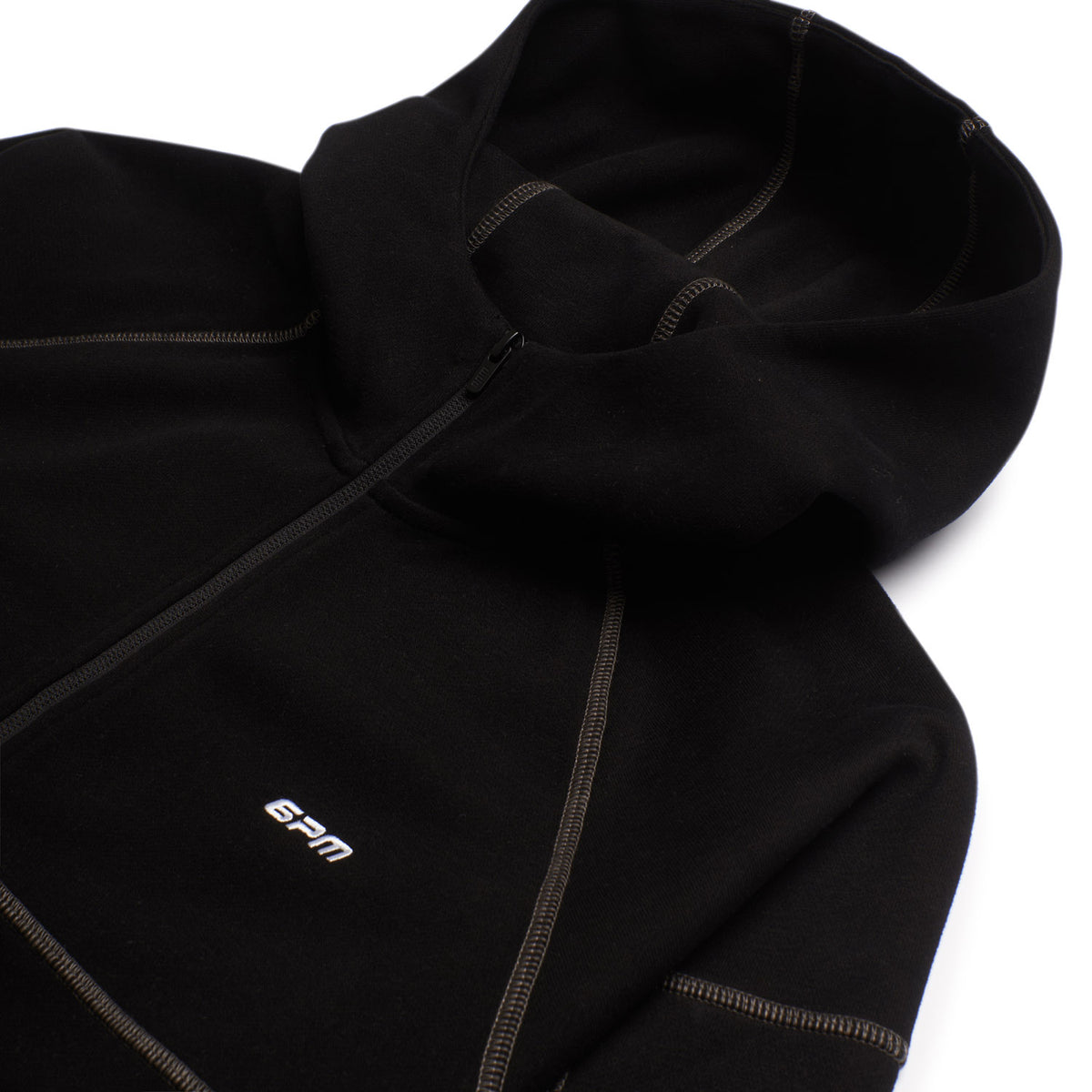 Finishing: Technical interlock jacket with bonded zip pockets. Overlock stitching, embroidered logos.