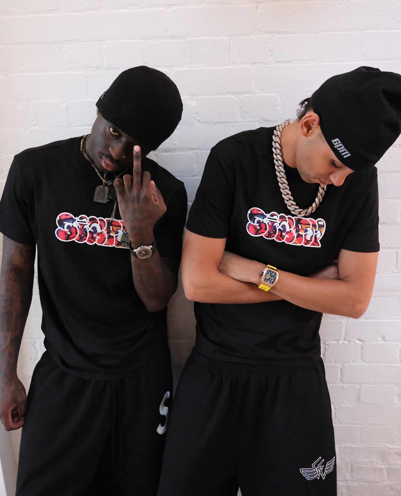 For the second time, we collaborated with Slawn, a nigerian artist and longtime friend of the brand. The small capsule collection consists of two t-shirts, a zip-hoodie and open leg sweatpants, all featuring Slawn‘s artworks.