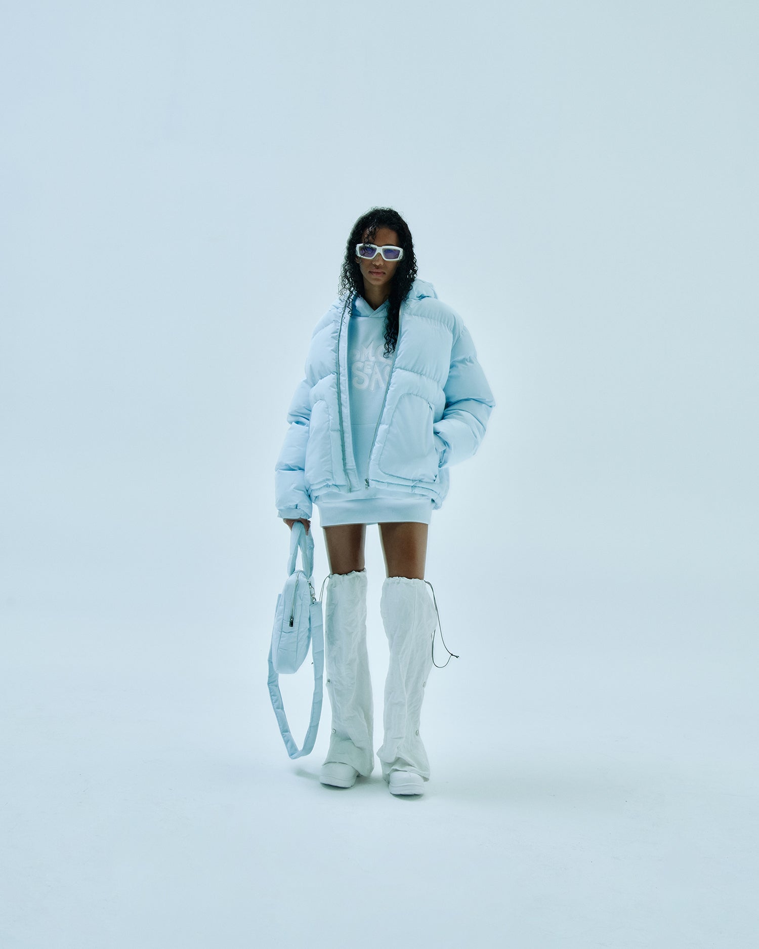 Featuring puffer jackets and double layer hoodies to keep you extra warm, this collection is designed for those who love a cozy outfit. Signature graphics meet modern takes on staples. Additional items are the embroidered puffer bag and a triple stitch denim.