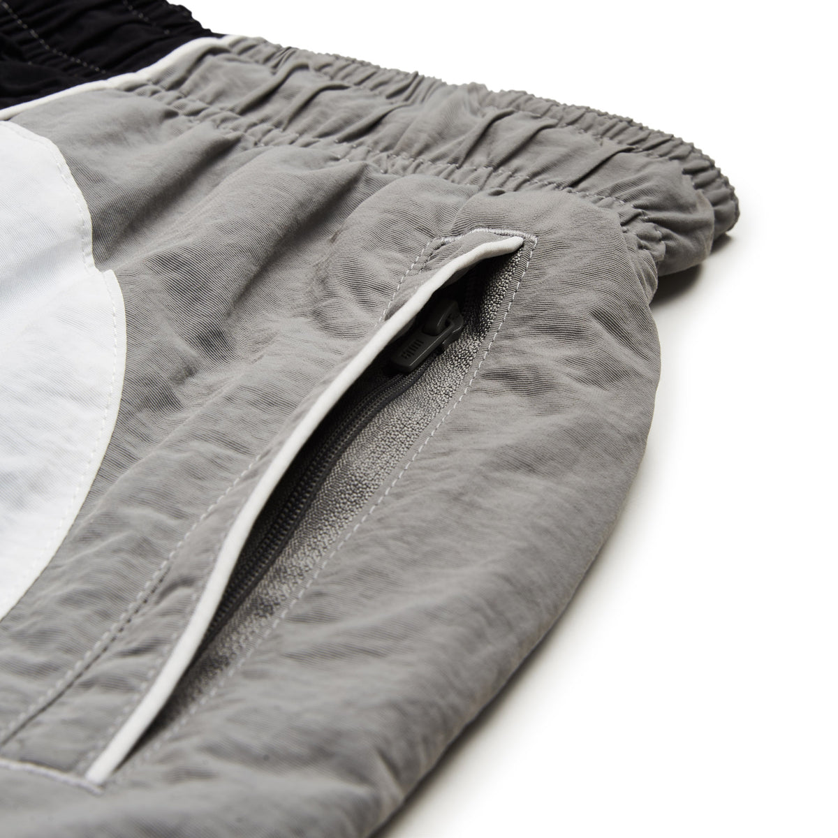 Finishing: Logo embroidery on leg, front and back pocket with zipper, piping details