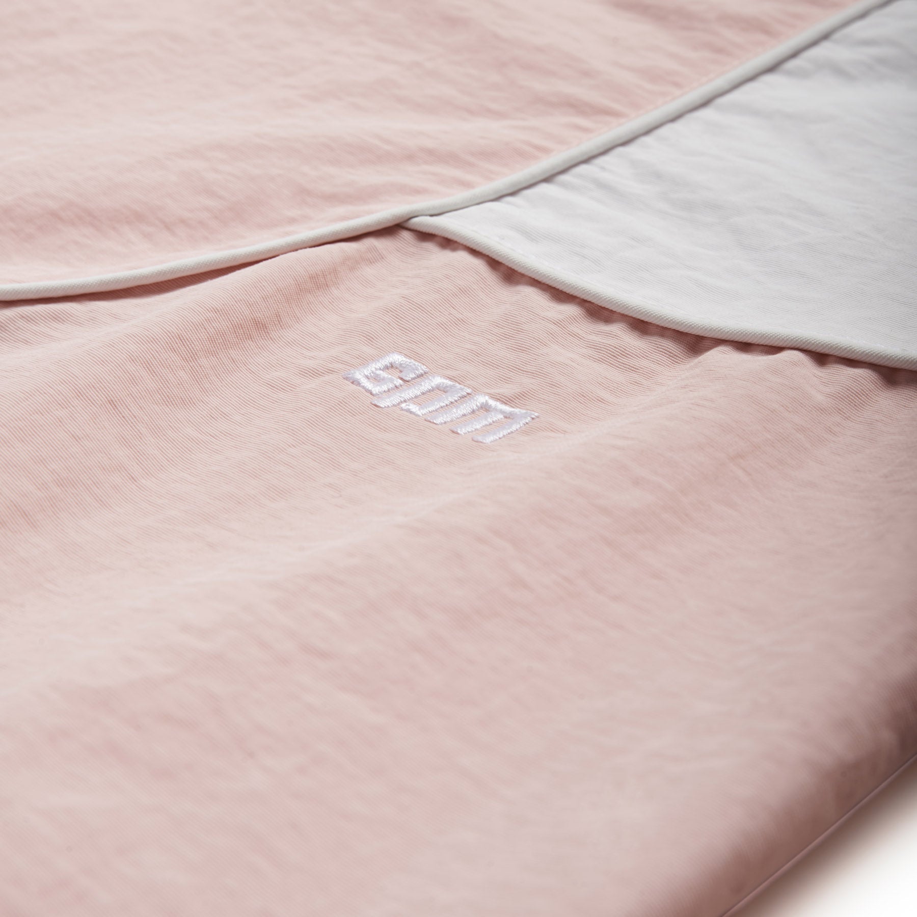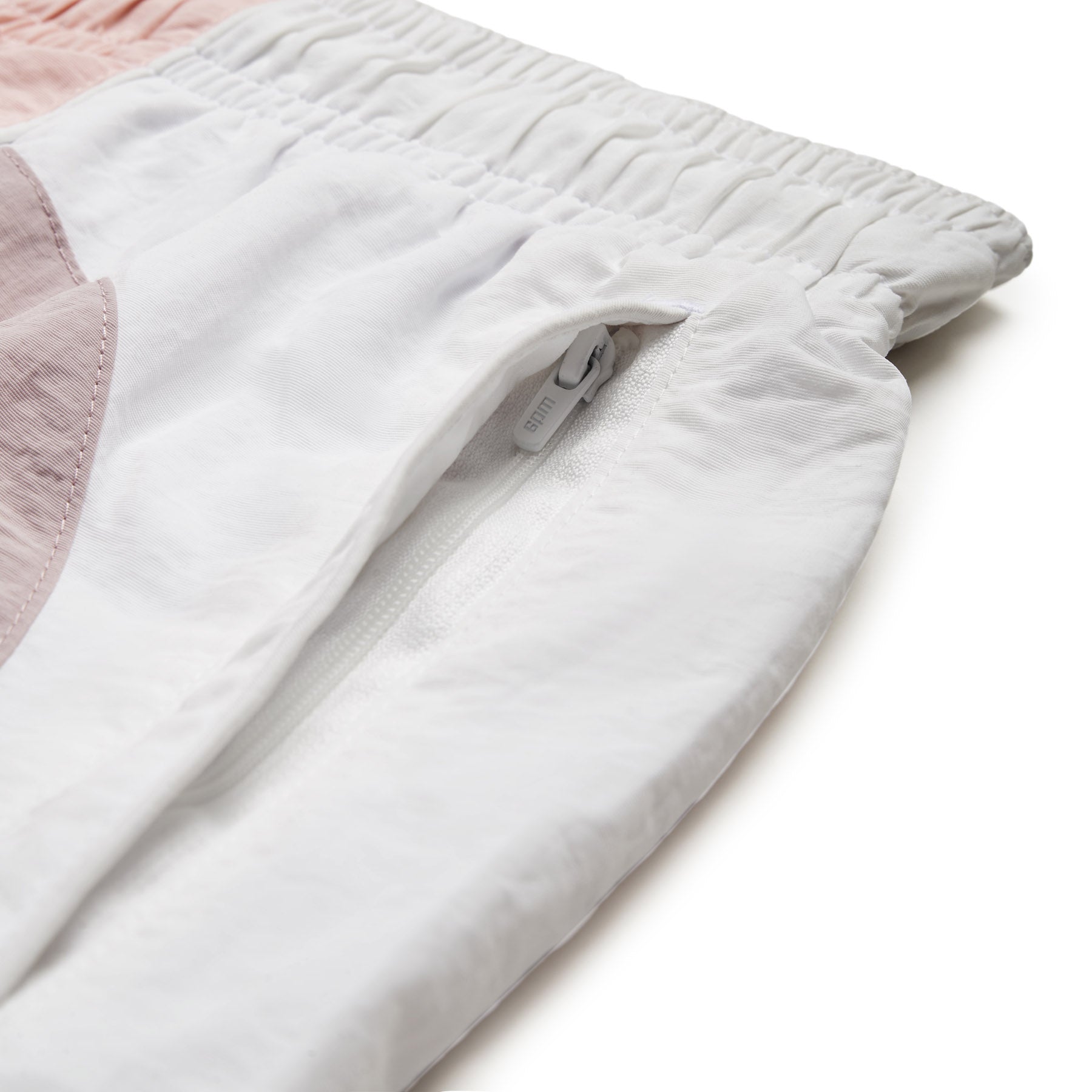 Finishing: Logo embroidery on leg, front and back pocket with zipper, piping details