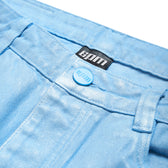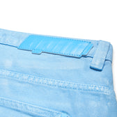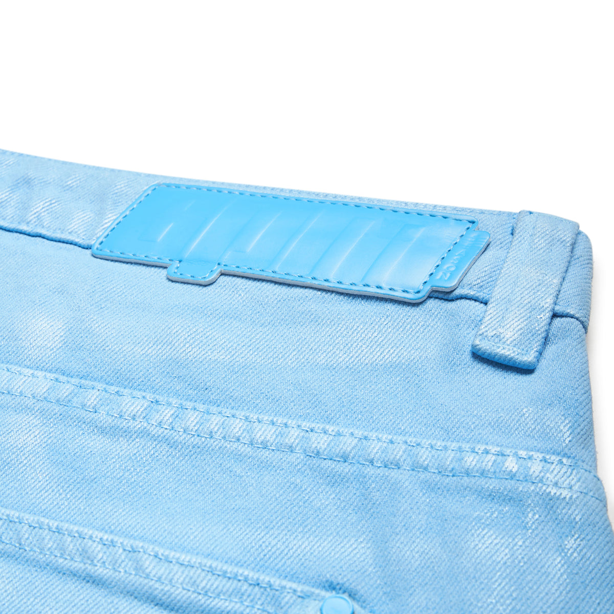 Finishing: baby blue Coating, blue coated metal logo buttons, tonal faux leather badge
