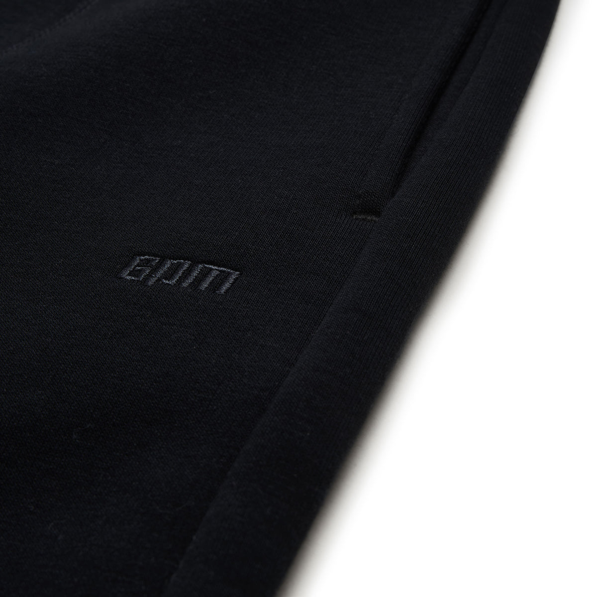 Finishing: Coverlock stitching on center of legs, back pocket, tonal logo embroidery under side pocket