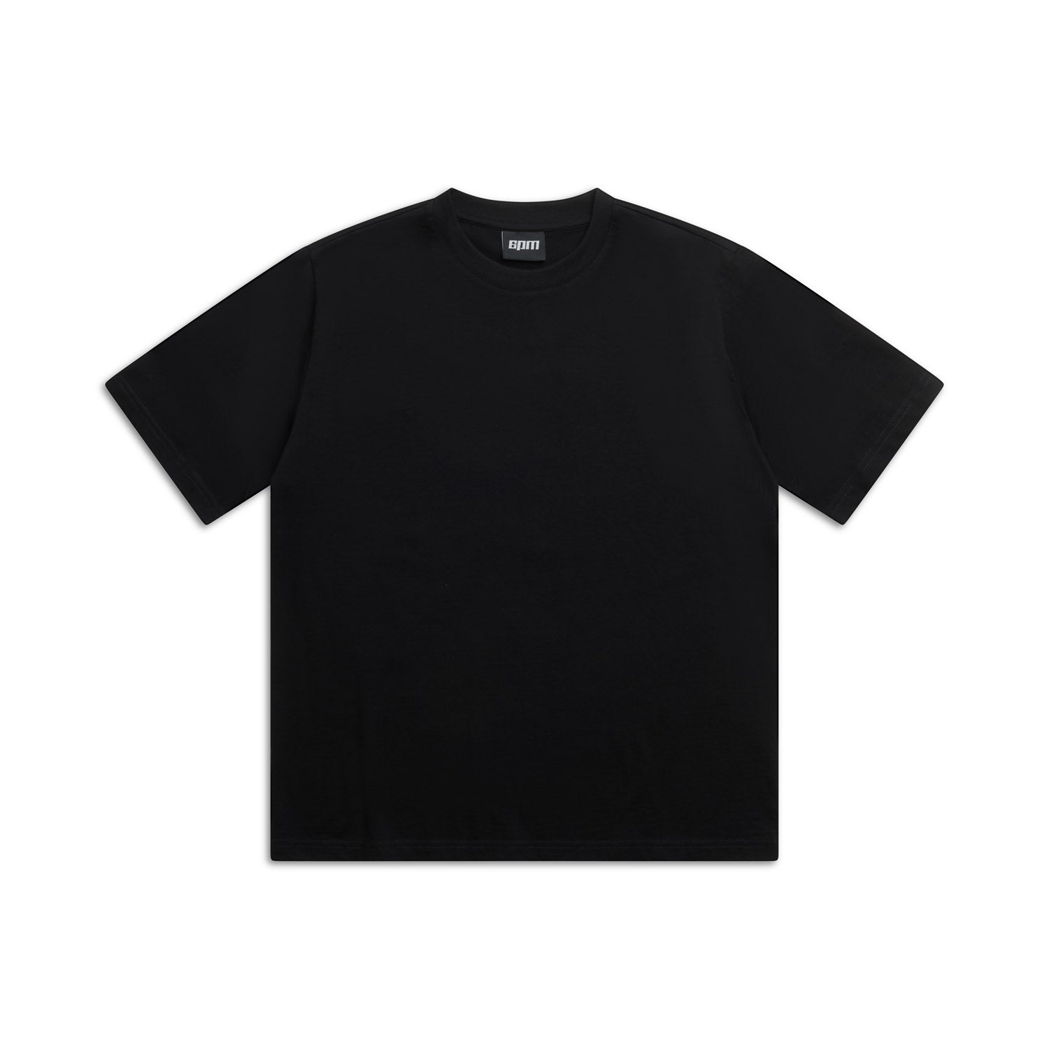 Finishing: Single jersey tee with rib at neck, and screenprint with stitching shaped puffed print at back