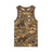 Finishing: Rib tanktop with all over printed camo, 6pm Logo fold label at hem
