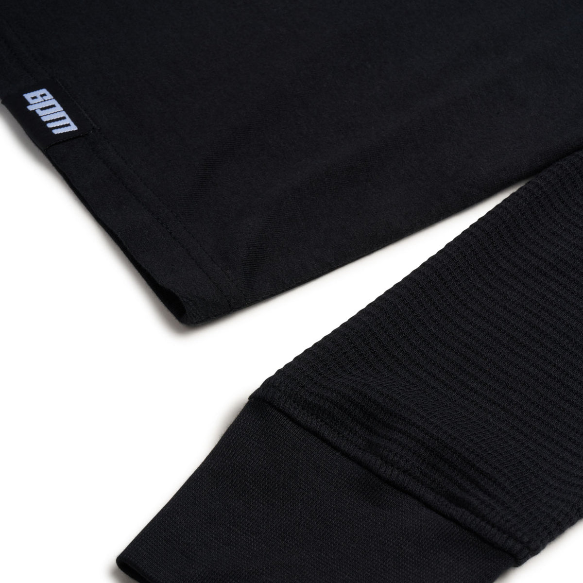 Finishing: Double-layer longsleeve. Single jersey body with waffle knit sleeves. Woven label at hem.
