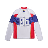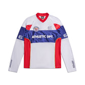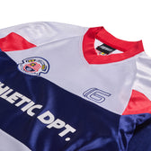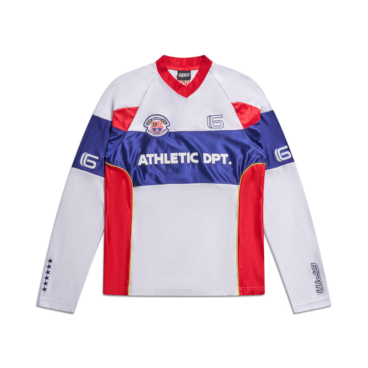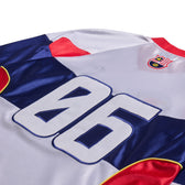 Finishing: Multi-coloured soccer jersey with 3D embroideries, prints and badges