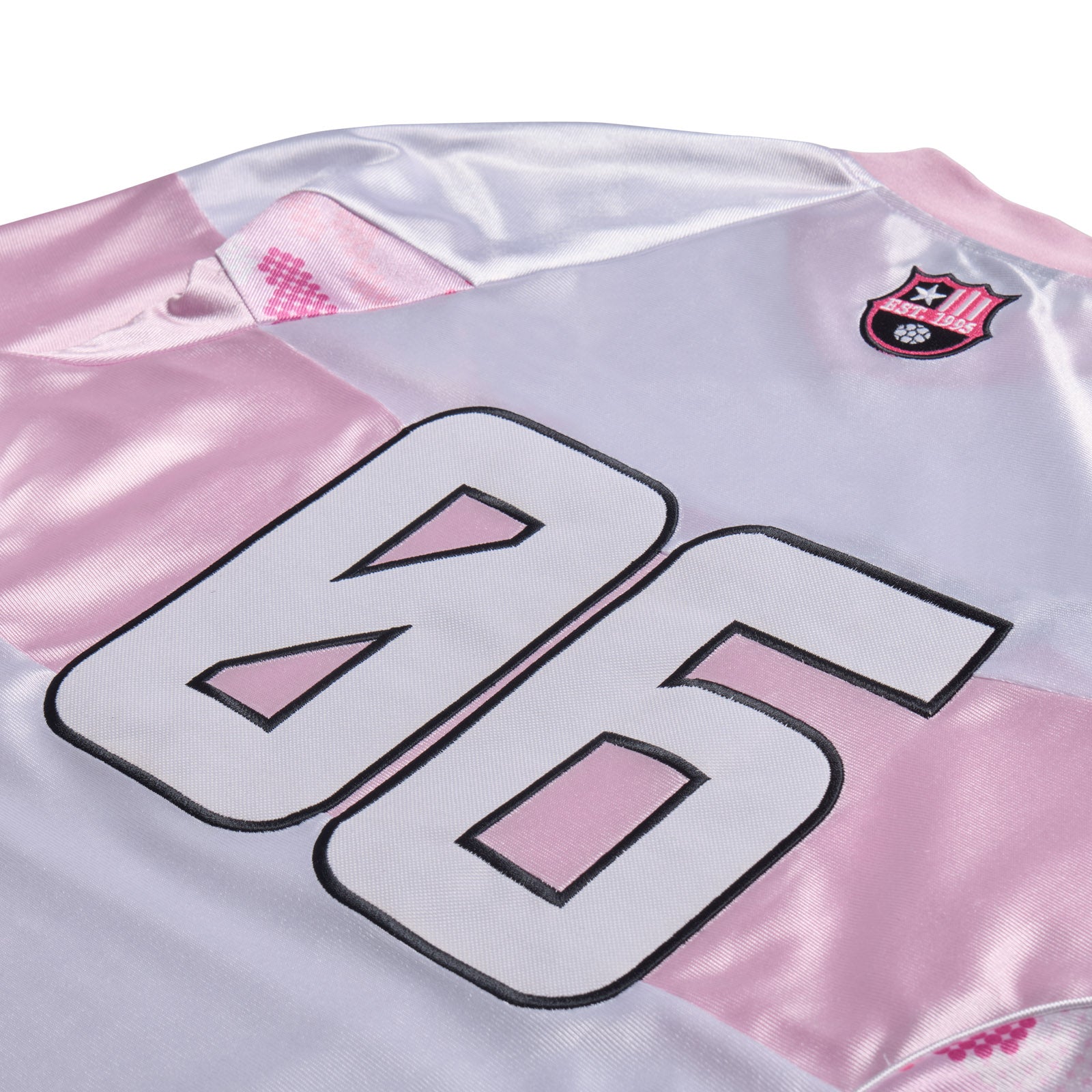 Finishing: Multi-coloured soccer jersey with 3D embroideries, prints and badges