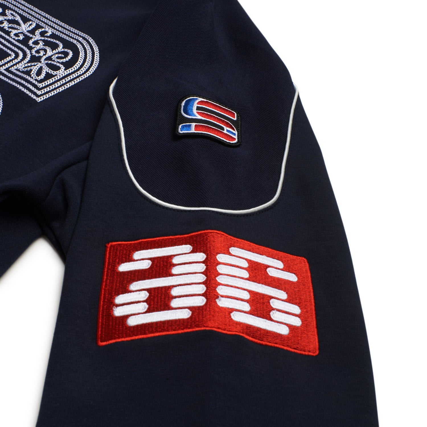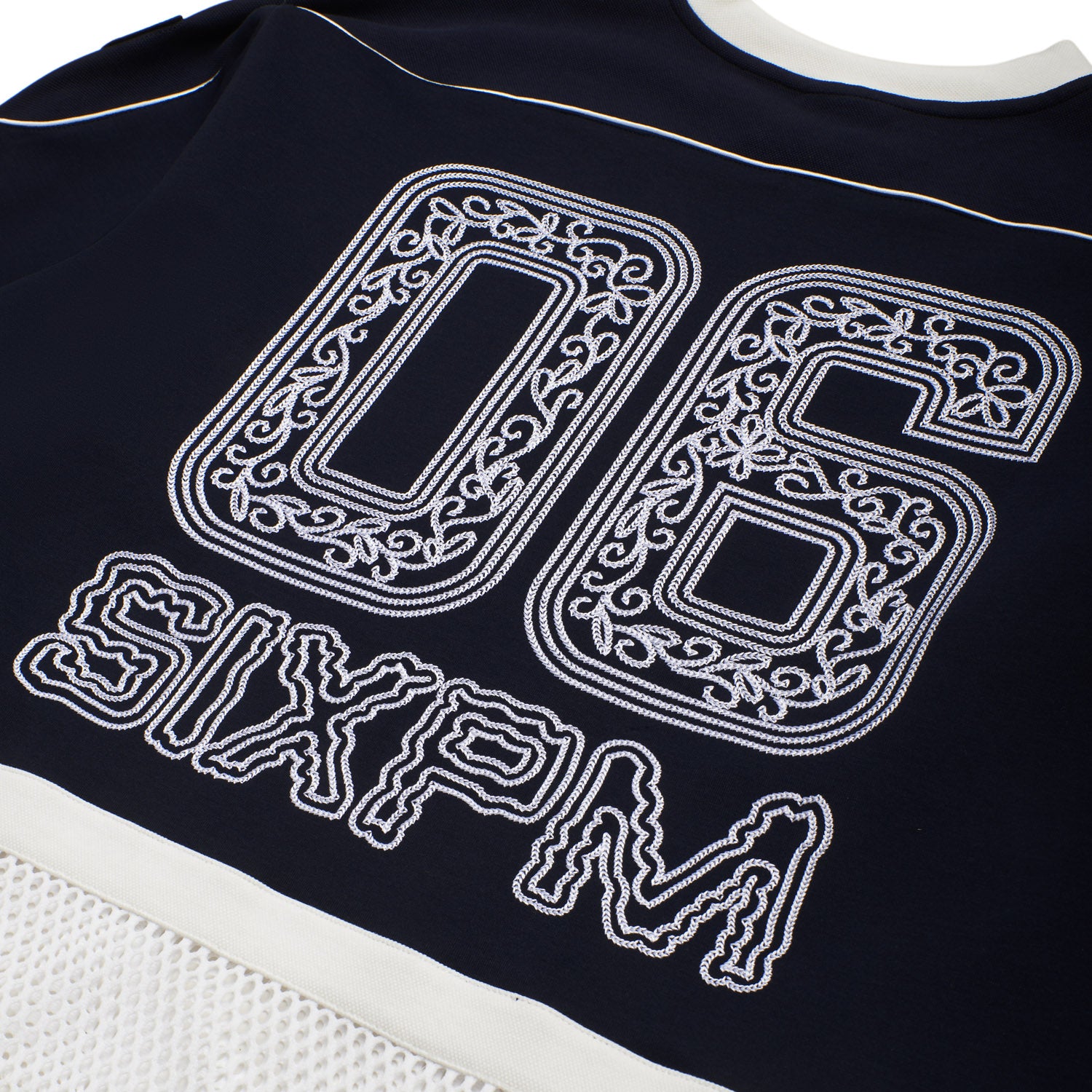 Finishing: Fabric mix, chunky mesh details, piping details, embroidered graphics and badges on sleeves