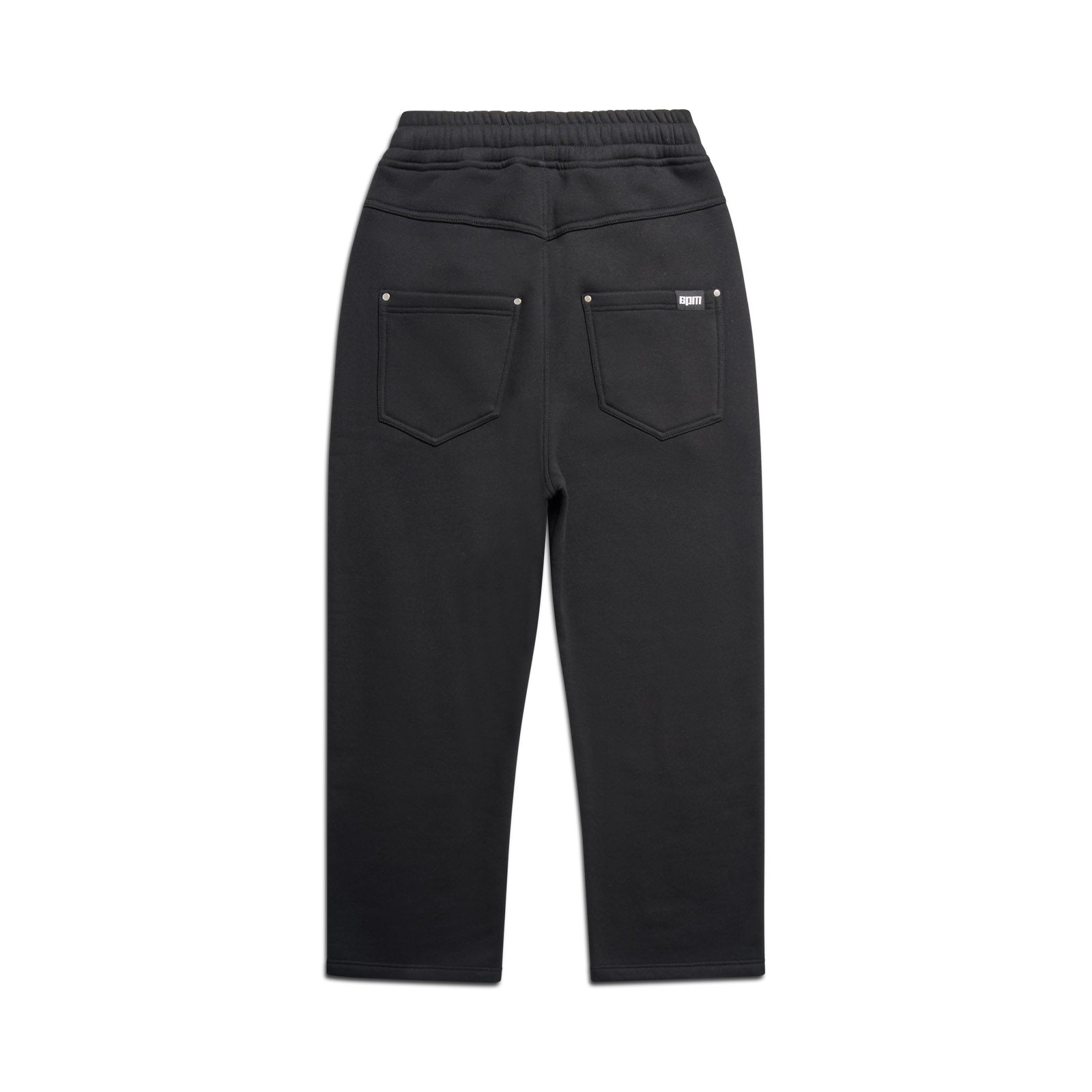 Finishing: Sweatpants with a 5-pocket jeans design, drawstring inside and woven label on back pocket