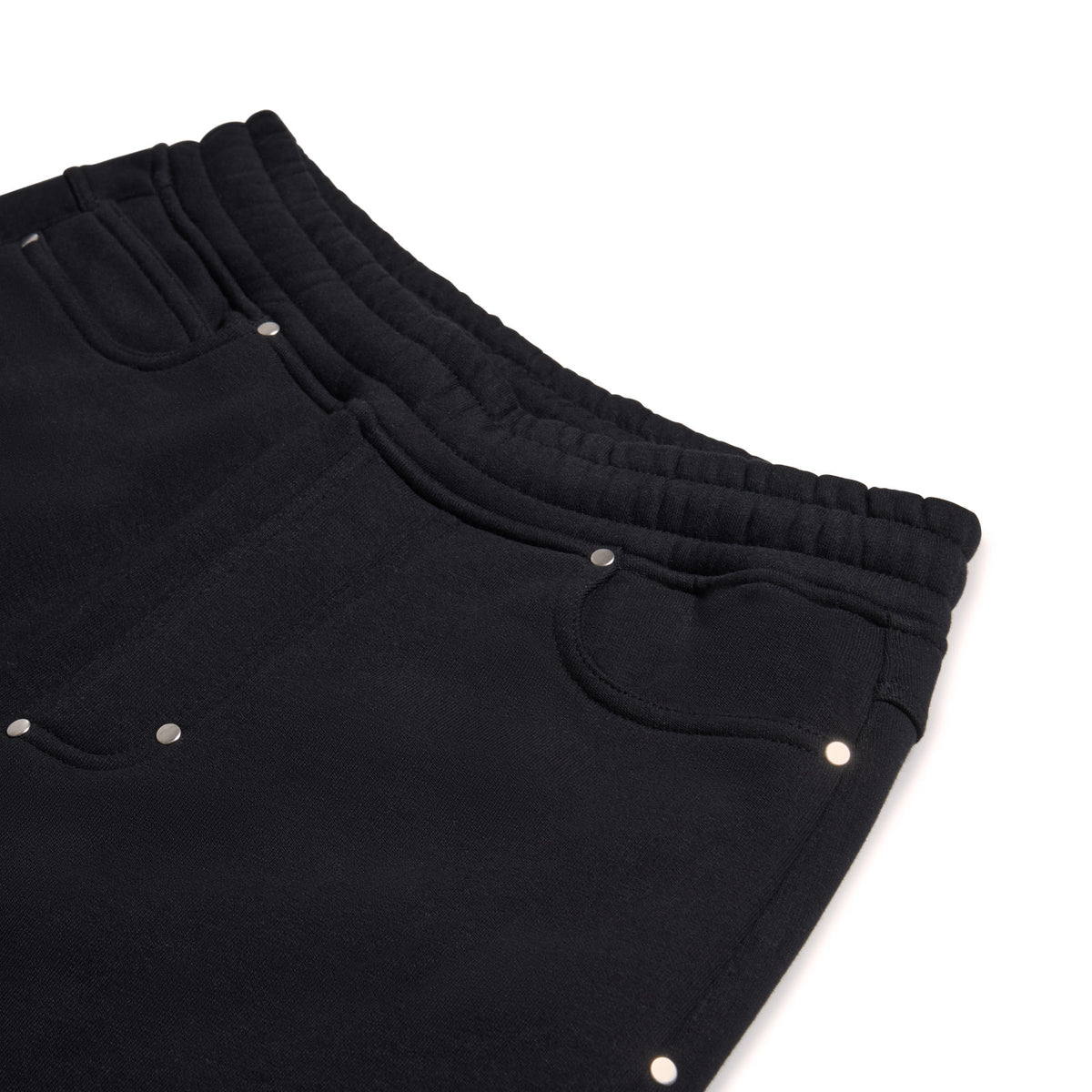 Finishing: Sweatpants with a 5-pocket jeans design, drawstring inside and woven label on back pocket